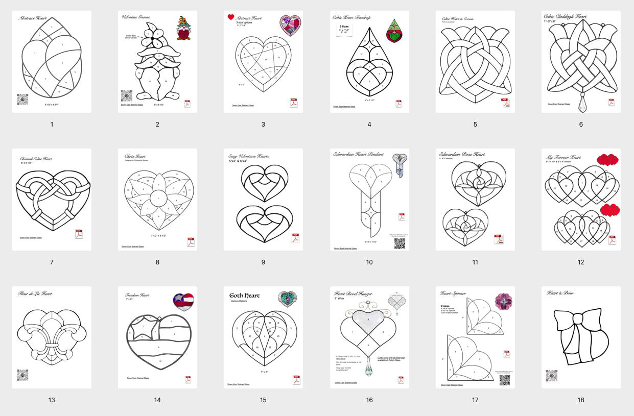 Heart 18 Pack PDF Bundle contains patterns in easy printing format or use for digital resizing etc.