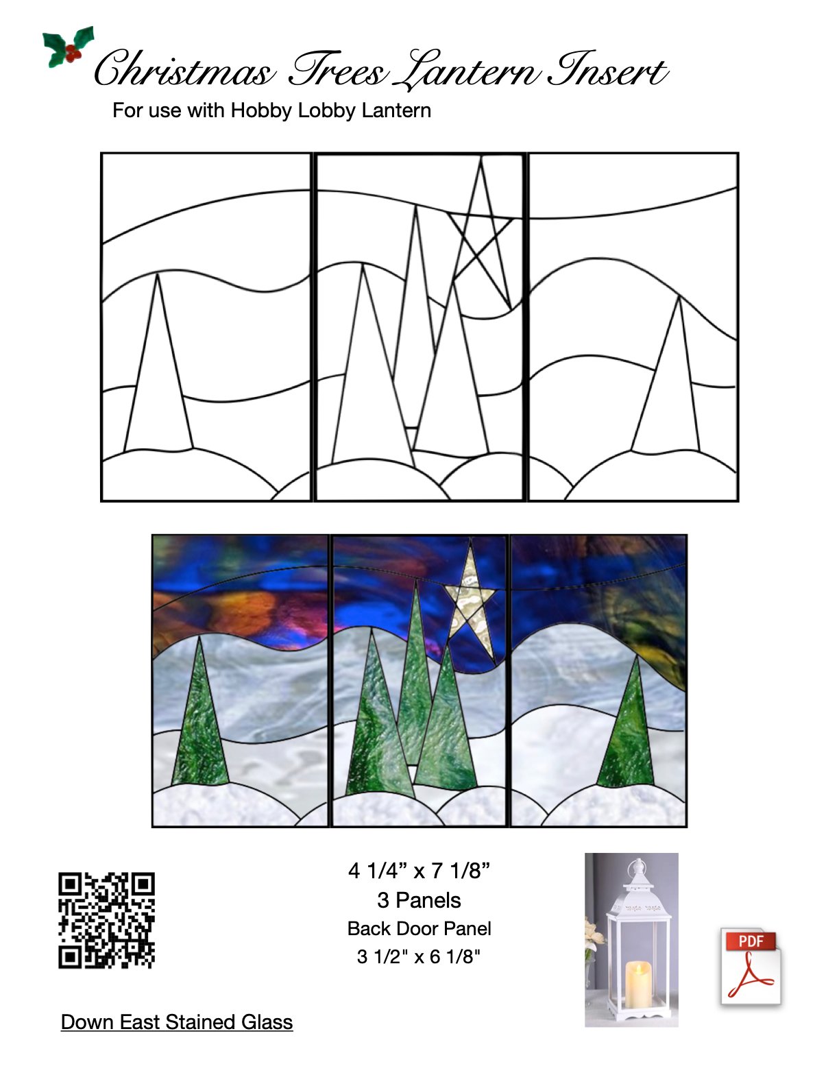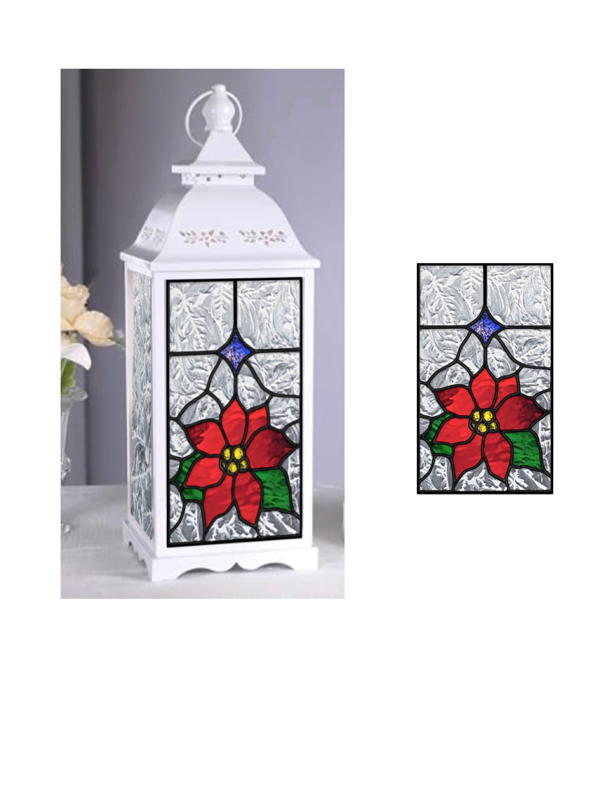 Christmas Tree and Poinsettia Stained Glass Lantern 2 Pack